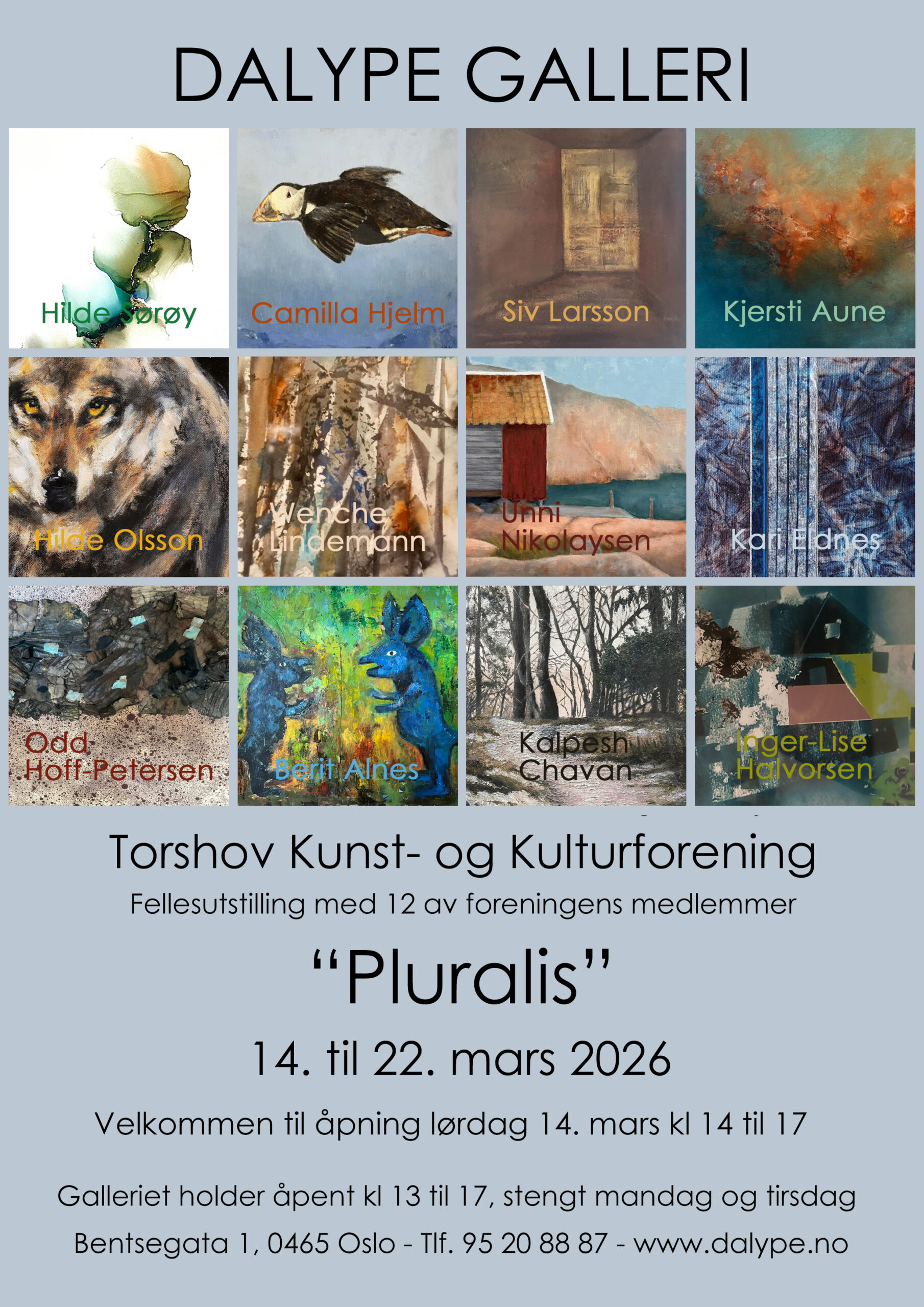 Torshov Kunst og Kulturforening «Pluralis» Åpning av utstillingen blir lørdag 14. mars mellom klokken 14 og 17, Utstillingen varer til og med 22. mars.
